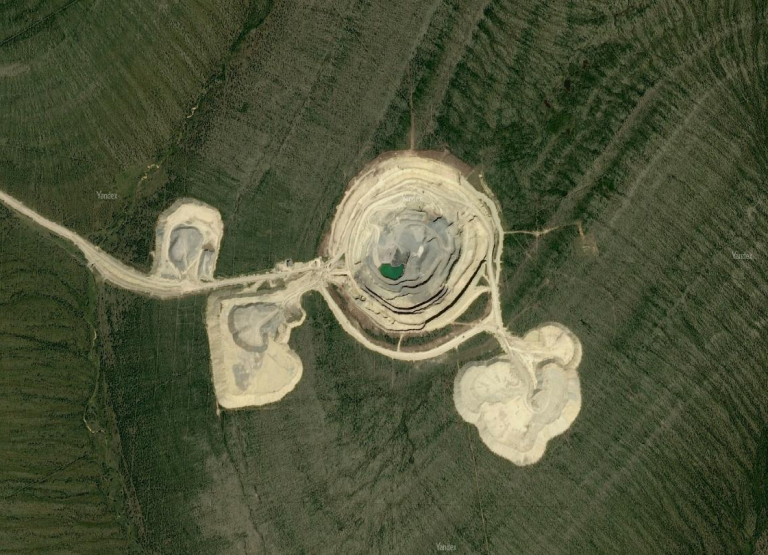 Карьер на кимберлитовой трубке «Зарница». yandex.ru/maps