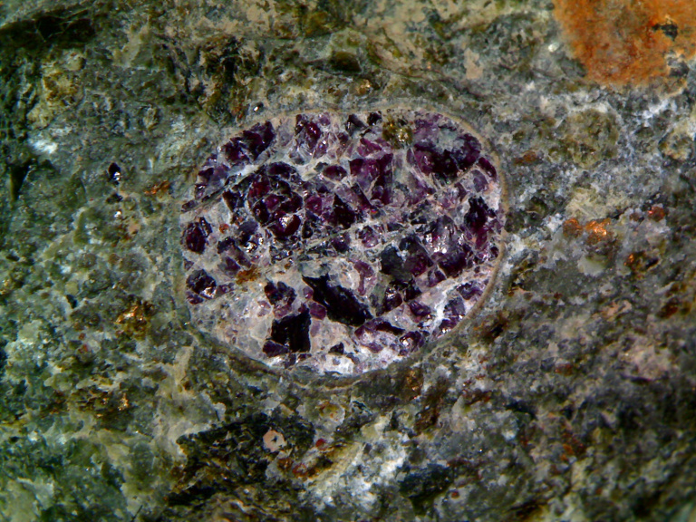 Пироп в кимберлите. Карьер «Мир». Фото: Staselnik, commons.wikimedia.org