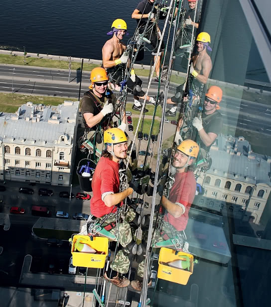 Все работы делятся на высотные (от 1,3 до пяти метров) и верхолазные (свыше пяти метров). О какой-либо максимальной критической точке я не слышал. Мой личный рекорд – 85 метров 37 сантиметров, новый офис «Банка «Санкт-Петербург».
