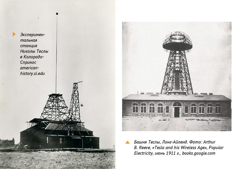 Но чтобы продолжать исследования в области определения электрического потенциала Земли, нужен был более мощный осциллятор. Стесненность в средствах помогли преодолеть друзья. В 1899 году в Колорадо-Спрингс – горной местности, где рождаются мощнейшие молнии на Земле, – было построено здание 30 × 30 м с раздвижной крышей. В центре возвышалась деревянная 24-метровая башня. От нее вверх уходила мачта высотой 61 м, увенчанная медным шаром. От шара в лабораторию спускался мощный кабель. В здании разместили трансформаторы высокочастотных токов, самым крупным из которых был «усилительный передатчик».