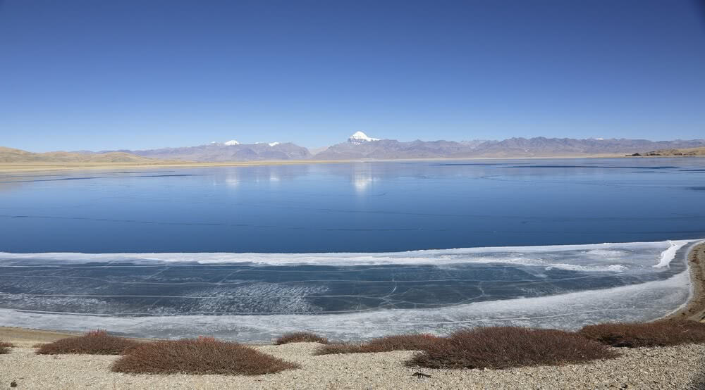 ОТРАЖЕНИЕ КАЙЛАСА ВО ЛЬДУ ОЗЕРА РАКШАС ТАЛ