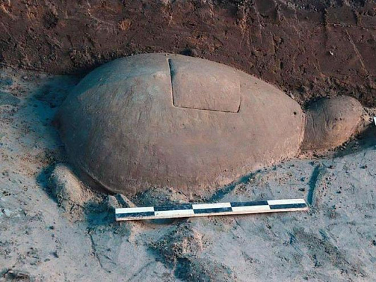 Исследователи обнаружили черепаху в песчанике при раскопках небольшого храма, который когда-то стоял на искусственном острове посреди водохранилища. После того, как ученые определили местонахождение храма, рабочие понизили уровень воды до уровня, позволяющего начать раскопки.