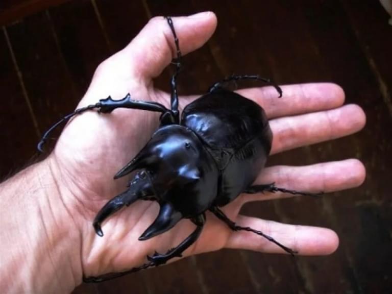 Насекомое в длину достигает 11 сантиметров и имеет огромный рог на голове. Его