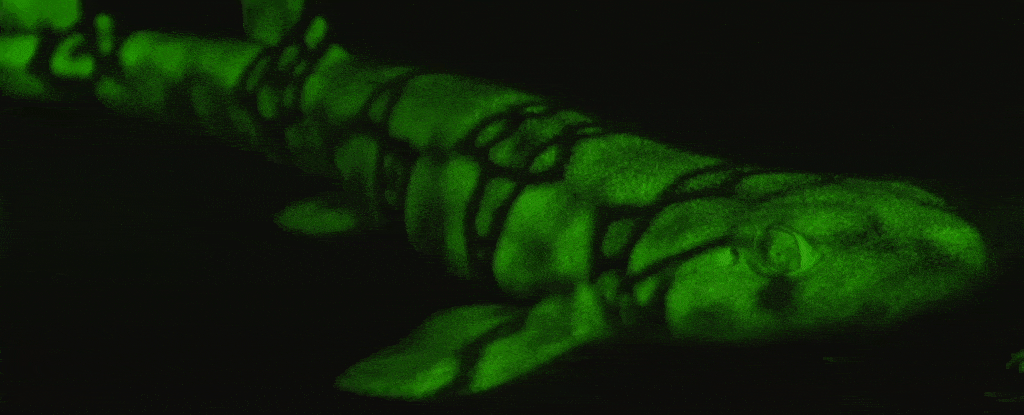 Акулы видов Scyliorhinus retiferи Cephaloscyllium ventriosum делают это иначе. В их организмах свечение образуется химическим путём, невиданным ранее у других животных. У этих акул в организме вырабатываются особые метаболиты, благодаря которым и происходит это подкожное свечение в условиях низкой освещенности на морском дне. Для человеческого глаза этот эффект едва различим, поэтому флуоресценция была обнаружена только в 2014 году. Тем не менее, глаза акул могут его видеть.