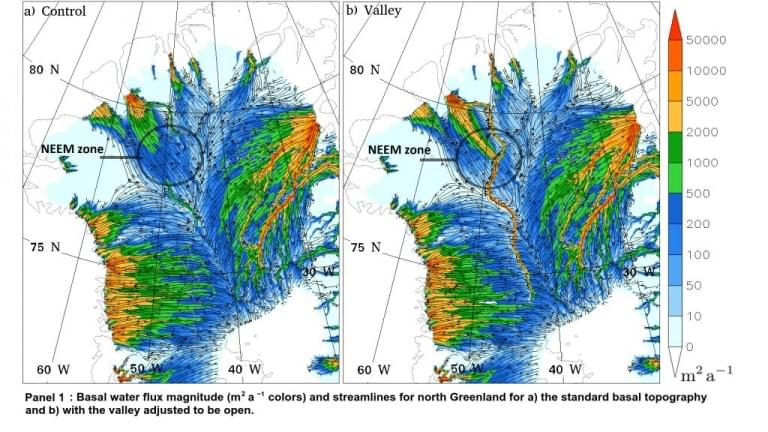 Чтобы получить более чёткое представление о том, что скрывается под поверхностью Гренландии, Чемберс и его коллеги провели компьютерное моделирование для изучения долины на различных глубинах. Также они смоделировали то, как вода может таять на поверхности ледника, а затем просачиваться до его основания. Вероятно, в результате этих процессов под ледником образуется текучая река. Чемберс рассказал о своих исследованиях агентству Live Science, которые он затем представил 9 декабря на ежегодном заседании Американского геофизического союза. Моделирование указывает, что вода может течь по долине от центра Гренландии до её северного побережья на глубине от 100 до 300 метров под ледником, а затем вытекает из-под фьорда Петерманна. Поскольку река течёт на протяжении сотен километров под огромной толщей льда, не освещаясь светом, учёные назвали её «Тёмной рекой».