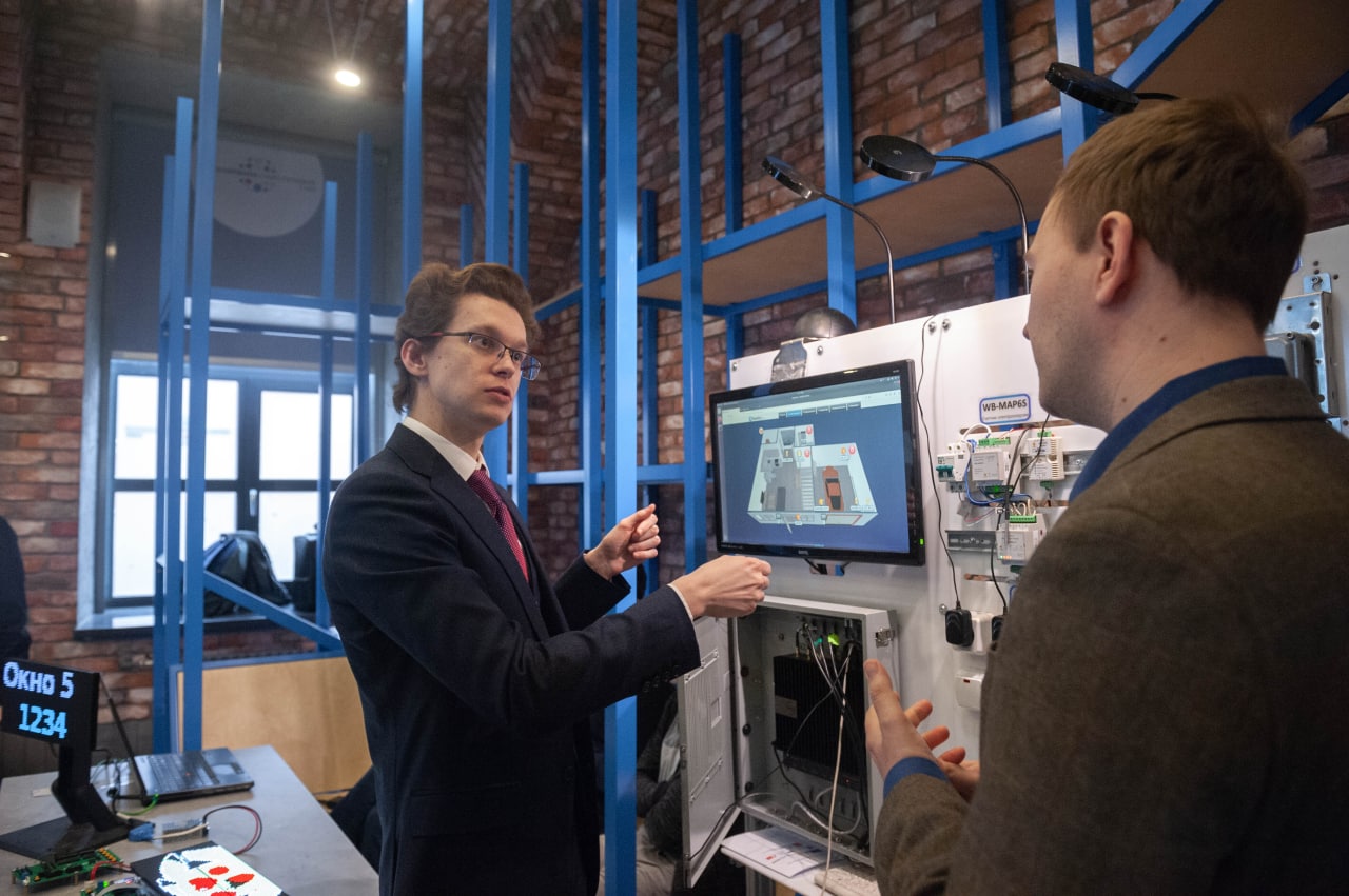 Директор Инженерной школы Сергей Валентинович Солёный рассказал о перспективных разработках обучающихся. В Инженерную школу входит несколько лабораторий: робототехники, кибербезопасности, интернета вещей, электроэнергетики, беспилотных авиационных систем, искусственного интеллекта, а также отдел Инженерный гараж и студенческое конструкторское бюро «Силовые Машины».