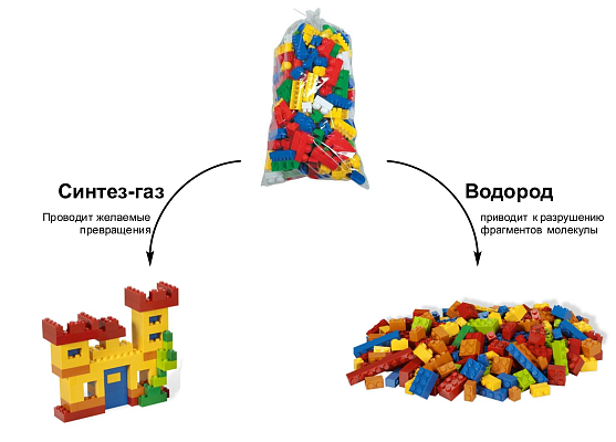 Ученые из группы эффективного катализа Института элементоорганических соединений имени А. Н. Несмеянова РАН (Москва) предложили проводить реакции восстановления с помощью синтез-газа — смеси водорода и угарного газа. Эта комбинация не только позволила совместить высокую активность первого компонента и избирательность второго, но и привела к синергическому эффекту, в частности, обеспечила гораздо большую производительность, чем при использовании каждого из восстановителей по отдельности.