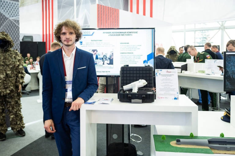 Владислав Львов представляет «тканевой пистолет», разработанный в НИТУ МИСИС