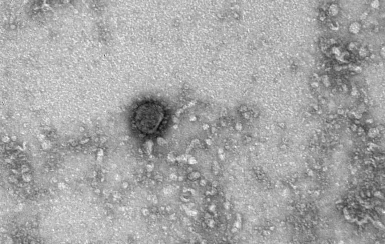 Как сообщает ТАСС, размер частицы коронавируса, представленной выше на снимке, не превышает 120 нм.