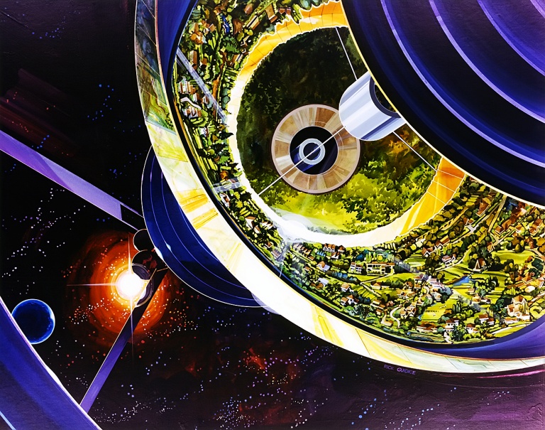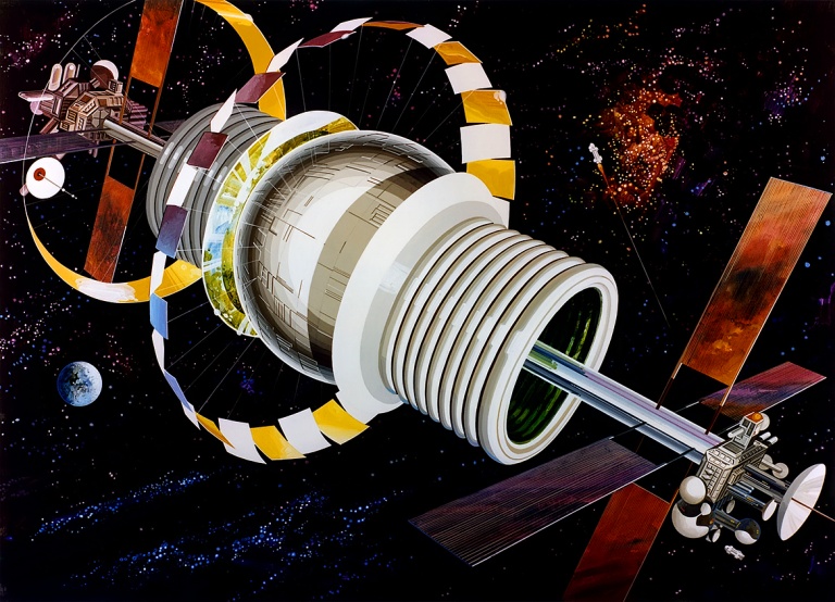 В наше время идея поселений в космосе хоть и не популярна, но точно не забыта. Интересен проект исследователей из Стэнфордского университета, который так и называется – «Стэнфордский тор». Ученые предлагают построить в космосе бублик диаметром 1,6 км и толщиной 150 м, вращающийся вокруг невидимой оси для создания искусственной силы тяжести. В центре конструкции устанавливается неподвижное зеркало, отражающее солнечный свет на вращающееся кольцо из вторичных зеркал вокруг центра. Кольцо соединяется со ступицей через «спицы»-коридоры для движения людей и грузов до оси и обратно. Ступица – это ось вращения станции. Там планируется обустроить стыковочный узел приема космических кораблей. Внутреннее пространство тора будет жилым.