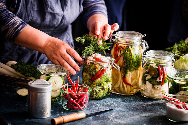 Бактериям, плесневым грибам и дрожжам часто нужна вода или воздух, чтобы испортить пищу: кислород запускает окисление жиров, а влага – среда для жизни микробов. От всего этого защищает консервирование – по-разному, но в основе всех методов лежат химические реакции, предотвращающие размножение «вредителей». Рыбе подойдет обыкновенное соление: свежую рыбу натирают большим количеством соли и отправляют в темное холодное место на несколько суток. За это время соль «вытягивает» из нее всю воду по принципу осмоса: вода всегда уходит в более концентрированную среду. В филе не остается влаги, а кроме того, рыбу упаковывают в вакуумные пакеты, чтоб аэробные бактерии, зависимые от кислорода, погибли. С мясом тот же эффект дает копчение. Куски мяса насыщают соляным раствором, оборачивают в пищевую пленку и коптят при температуре 65 °С, вытягивая влагу. Для фруктов и ягод больше подходят «сладкие» способы: сахар в высокой концентрации, как и соль, не дает бактериям размножаться. Отсюда – фрукты в сахарном сиропе, варенье, повидло. Возможна и сушка (яблок, бананов, винограда, абрикосов и др.), поэтому все сухофрукты – тоже результат консервирования. Овощи обычно солят или маринуют, а потом раскладывают по емкостям, плотно их закрыв. Можно и сразу уложить промытые овощи в герметичные банки, а потом подвергнуть их термической обработке, как это делают с горошком или кукурузой.