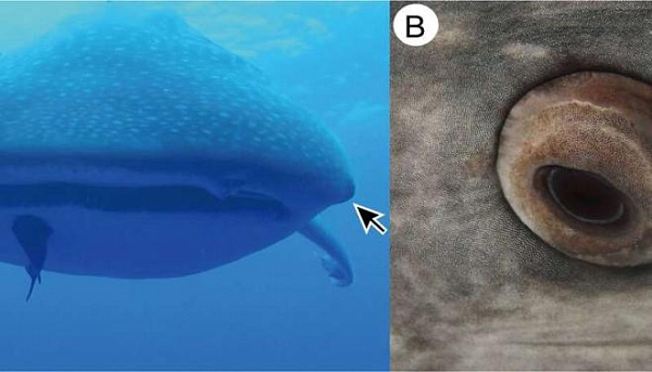 На коже вокруг глаз китовой акулы обнаружены зубы