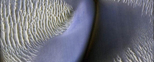 Песчаные дюны, которые встречаются и в пустынях на Земле, как правило, больше, чем мелкие песчаная рябь. Они состоят из более коротких, более крупных песчинок, которые располагаются в верхней части гребней, опираясь на более мелкие зерна, захороненные на дне.
