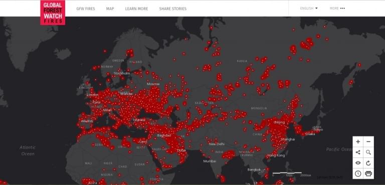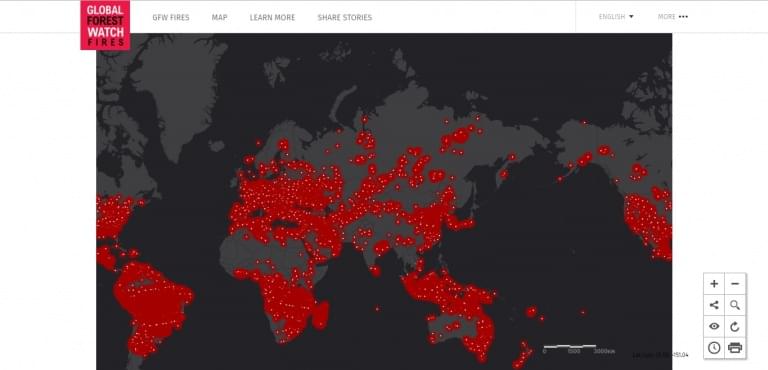 Карта лесных пожаров на планете наглядно показывает их масштаб