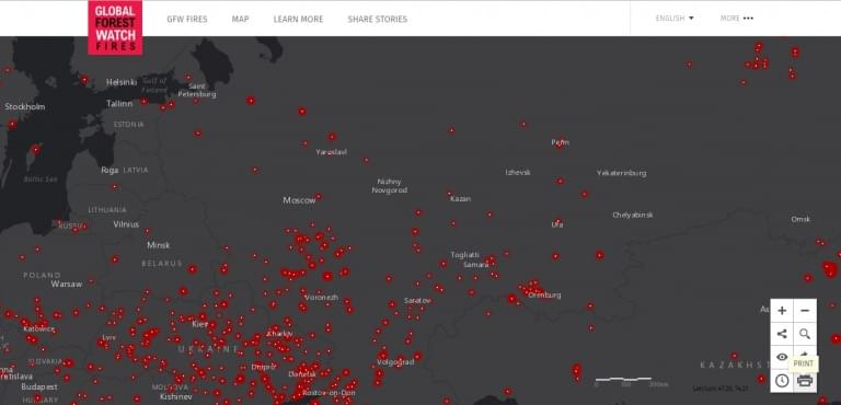 На просторах интернета есть сайт fires.globalforestwatch.org, с помощью которого можно в режиме онлайн отслеживать актуальное состояние пожаров, возникших в разных точках мира. Информация обновляется каждые два часа с помощью спутников NASA. Также интерфейс сайта позволяет отслеживать потоки ветра в реальном времени.