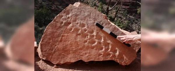 «Это самые старые следы позвоночных в Гранд-Каньоне, — говорит палеонтолог Стивен Роуленд из Университета Невады. — Что еще более важно, они являются одними из самых старых следов откладывающих яйца животных на Земле, и самых ранних свидетельств того, что позвоночные животные в этом районе ходили по песчаным дюнам».Следы, о которых идет речь, были найдены на валуне, упавшем с ближайшего утеса. Слою древней породы приблизительно 313 миллионов лет. Благодаря случайному событию у ученых появилась возможность изучить самые старые следы и узнать о том, какие животные их оставили, и когда эта каменистая поверхность была песчаной дюной.