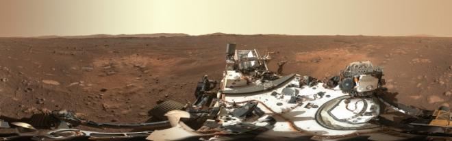 появилась первая круговая панорама высокого разрешения, снятая 21 февраля с помощью стереокамер с возможностью масштабирования Mastcam-Z. Отмечается, что в основу изображения легли 142 фотографии, а полная версия снимка занимает 52 мегабайта в сжатом формате JPEG или 610 мегабайт в TIFF.