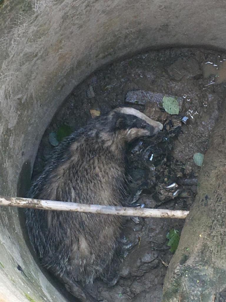 Члены отряда «Кошкиспас» обнаружили барсука, который застрял в бетонном колодце в поселке Никольское Гатчинского района Ленобласти.