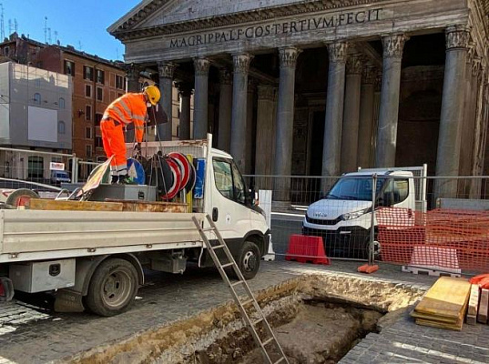 Найденные древние плиты на площади перед Пантеоном выглядят неповрежденными, возможно, благодаря слою пуццолана — пылевидной смеси из вулканического пепла, пемзы и туфа.