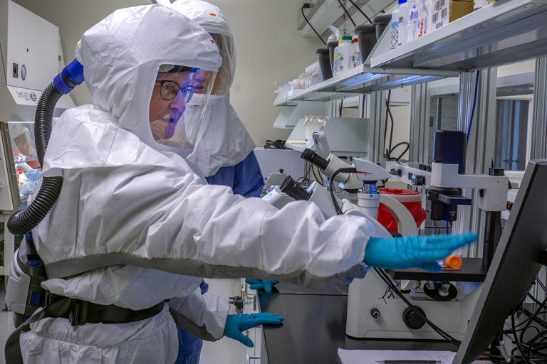 Работа над прототипом вакцины. Фото: Gord Waldner, inews.usask.ca