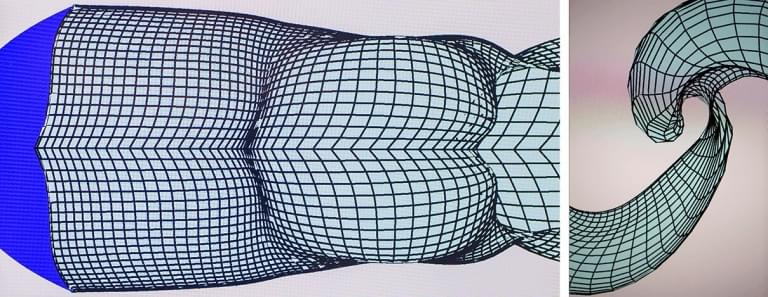 Фото: The wake structure left behind by a swimming dolphin.The result was produced by Lehigh PhD student Fatma Ayancik/Lehigh University