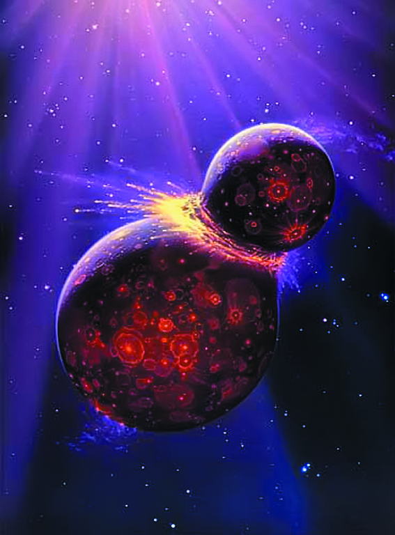 Я предполагаю, что молодая Земля 4,5 миллиарда лет назад столкнулась не с планетой, как считают сейчас ученые, а с кометой таких же размеров. Дело в том, что до сих пор астрономы не встречались с блуждающими планетами размером с Марс. Современные модели предполагают, что в ранней Солнечной системе столкновения небесных тел происходили много чаще, чем сейчас, но это касается лишь мелких планет. Большая планета должна была выйти на устойчивую орбиту и не столкнулась бы с Землей.
