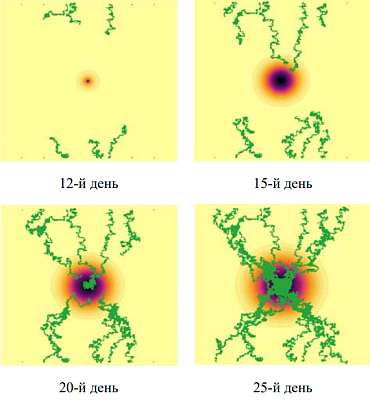 Динамика роста «солидной» опухоли с высоким парметром скорости деления. Иллюстрация: пресс-служба ПНИПУ