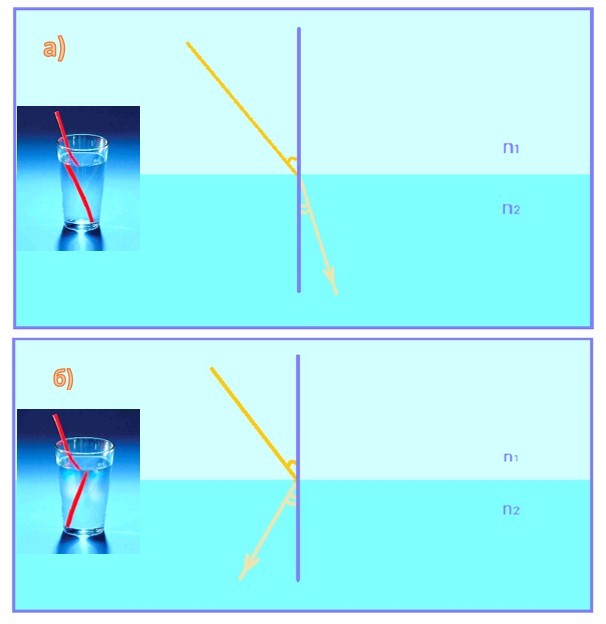 Преломление света в средах: а) с положительным показателем преломления; б) с отрицательным показателем преломления