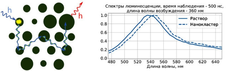 В работе, опубликованной в High Energy Chemistry, ученые исследовали роль флуоресцентных особенностей коллоидных квантовых точек InP:Mn/ZnS в процессах транспорта электронного возбуждения (Рисунок 2).
