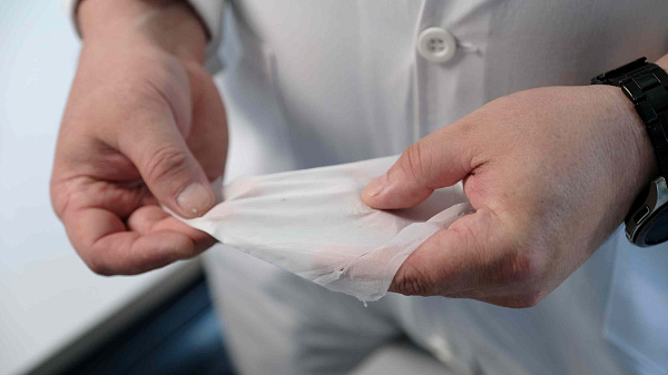 Образец пленки из биопластика, полученного на отходах рыбной промышленности. Фото: Анастасия Тамаровская / ФИЦ КНЦ СО РАНУпаковка занимает первое место среди всех направлений использования