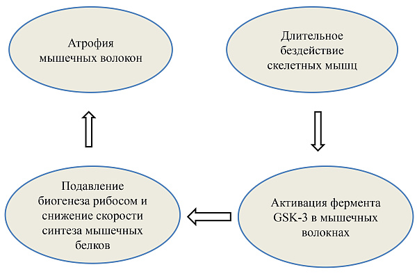 В связи с этим важно исследовать процессы, приводящие к мышечной атрофии. Основными из них считают замедление синтеза и одновременное ускорение распада мышечного белка. Скорость его образования во многом зависит от количества рибосом в мышечных волокнах. Именно с помощью этих внутриклеточных структур в организме создаются новые белки из аминокислот. Формирование новых рибосом (биогенез) — сложный клеточный процесс, требующий работы множества различных ферментов. Именно благодаря ему после силовых тренировок белки в мышцах синтезируются интенсивнее, в результате чего растет мышечная масса. Во время функциональной разгрузки, например при долгом бездействии, происходит обратный процесс — биогенез рибосом и синтез белков снижается, причем как у крыс, так и у людей. Однако молекулярные механизмы таких событий оставались неисследованными. Сегодня известно только, что важную роль в процессе может играть фермент киназа гликогенсинтазы-3 (GSK-3).