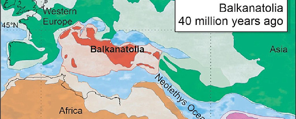 Низменный континент, названный исследователями Балканатолия, по мнению ученых, являлся домом для экзотической фауны. Именно он послужил своеобразными воротами для миграции животных из Азии в регионы Европы. Континент был зажат между Европой, Африкой и Азией. Когда уровень моря упал, около 34 миллионов лет назад образовался своеобразный сухопутный мост, соединивший Европу и Азию.