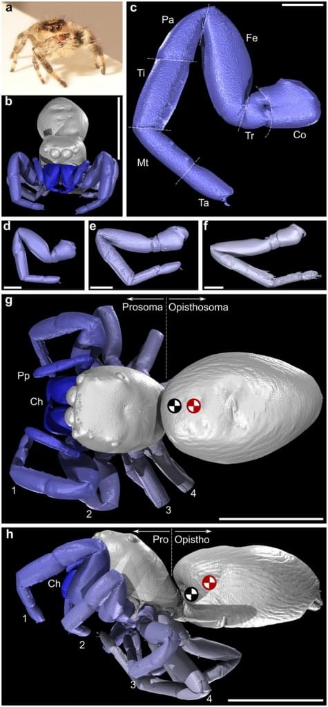 После проведения сканирования, ученые смогли построить модель тела паука и структуру его ног. Анализ видео совместно с моделями позволил лучше понять силы, стоящие за прыжком.