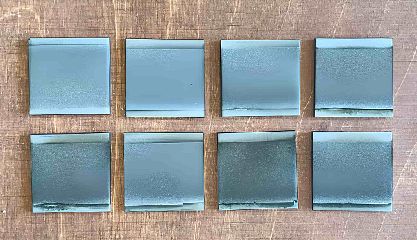 Образцы после напыления жаростойкого покрытия при разных режимах на дистанции 100 мм. Фото: Александр Малышев, пресс-служба ПНИПУ