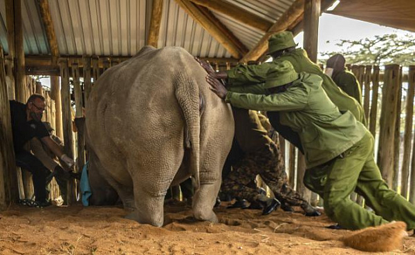 В Кении группа биологов и местных добровольцев собирается собрать яйцеклетки одной из немногих самок носорога для того, чтобы ее возможно было осеменить и пристроить суррогатной матери.