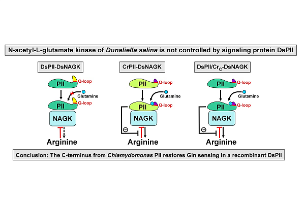 Второй важный результат был получен при создании гибридного белка, в котором С-конец PII Dunaliella salina ученые заменили на С-конец из PII другой зеленой водоросли рода хламидомонады — Chlamydomonas reinhardtii. Гибридный белок PII восстановил способность регулировать N-ацетил-L-глутаматкиназу. Тем самым впервые удалось продемонстрировать функциональную роль С-конца сигнального белка из консервативного семейства PII.