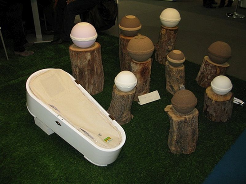 Характерно, что такие контейнеры в мире уже давно не новинка: ещё в 2010 г. на выставке погребальной индустрии в Аргентине была представлена серийная урна из соли, которая рассасывается в течение трёх часов в океане или до недели в грунте.