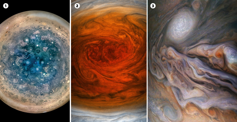 1. Южный полюс Юпитера. Фото: NASA/JPL-Caltech/SwRI/MSSS.Media Usage Guidelines, jpl.nasa.gov