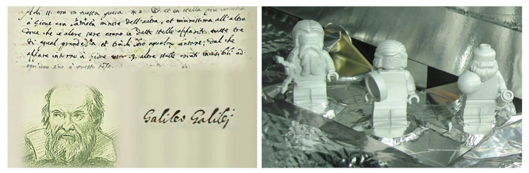 Еще одним символическим жестом стало размещение на борту зонда трех фигурок LEGO, сделанных из того же алюминия. Они изображают Галилея, держащего в руке телескоп, самого бога Юпитера с молниями, а также его жену Юнону, которая стоит с лупой, обозначающей исследования и грядущие открытия.