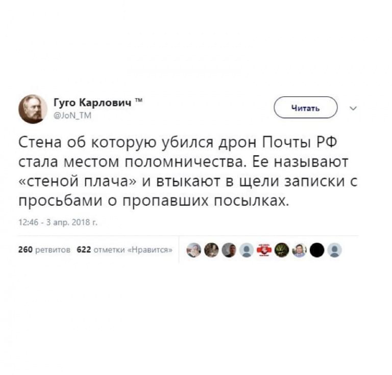 Первый в истории «Почты России» беспилотник, запуск которого компания откладывала в течение двух лет, упал сразу после взлёта. БПЛА должен был доставить груз из Улан-Удэ в село Нижний Саянтуй и пролететь всего 15 км от места старта, однако он не смог.