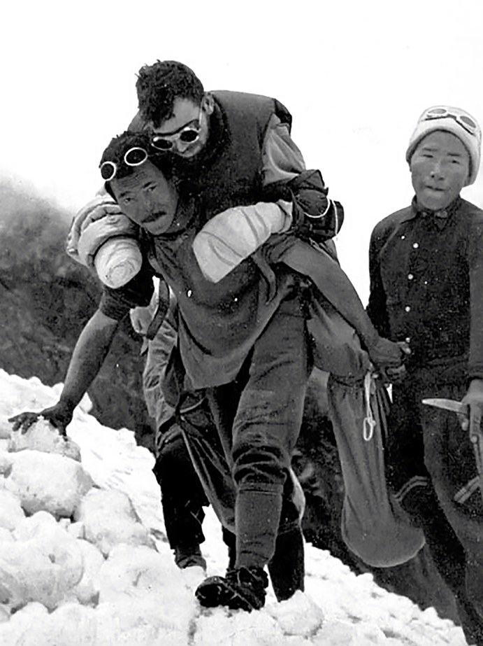 Альпинисты несут Мориса Эрцога вниз после восхождения на Аннапурну, 1950 г. Фото: Munich, Alpinismus, markhorrell.com