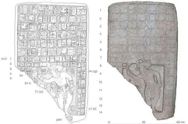 Тем не менее, как подтверждают археологические данные, королевство переживало не раз конфликты, как со своими соседями, так и с природой. Например, в нижней части таблички вырезана фигура танцующего. Этот правитель одет как бог Йопаат, который связан с сильными тропическими штормами. Фигура держит в правой руке топор с молнией, а в левой руке каменное оружие, используемое в ритуальном бою. Значит , жителям требовалась защита от штормов.