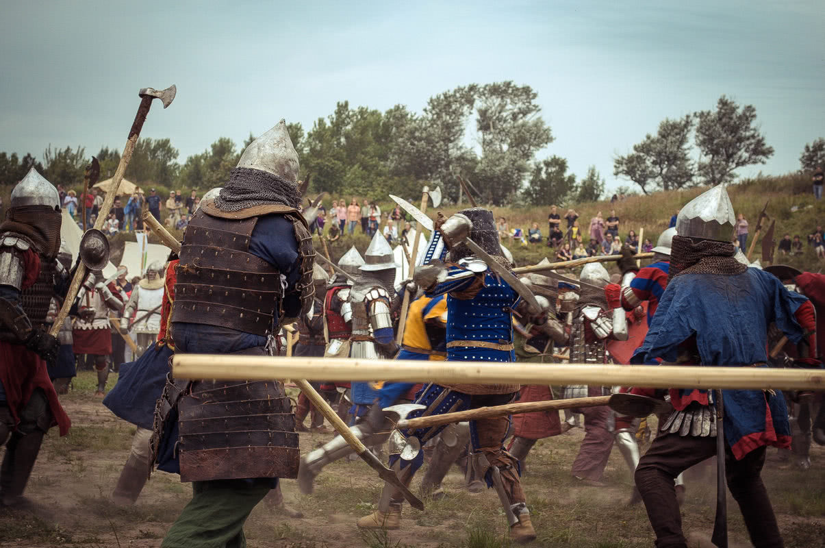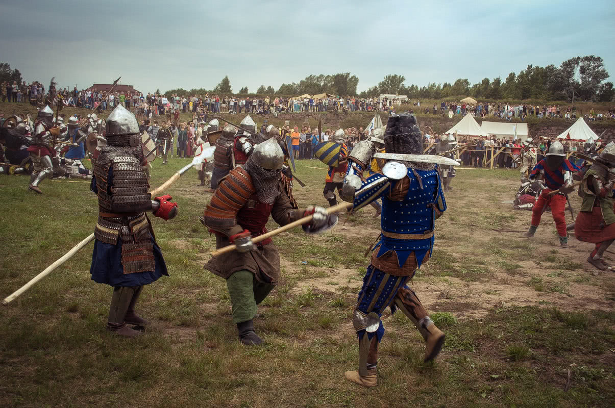 Зрители, требующие зрелищ, не хотели отходить от поля сражения на безопасное расстояние. Поэтому уворачивались от мощный рыцарей с копьями и мечами... как могли. Главное - никто из зрителей не пострадал!