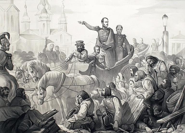 Николай I пытается усмирить протестующих. Фото: wiki