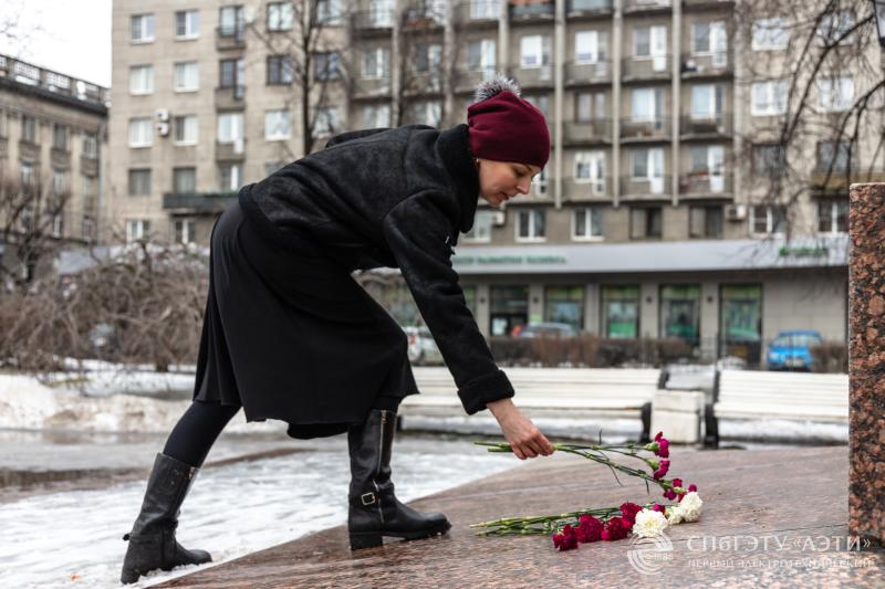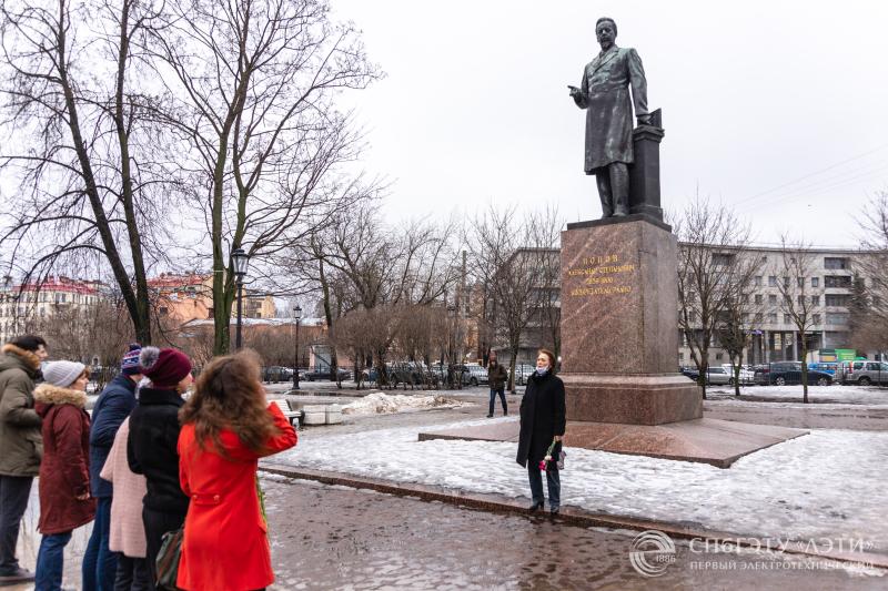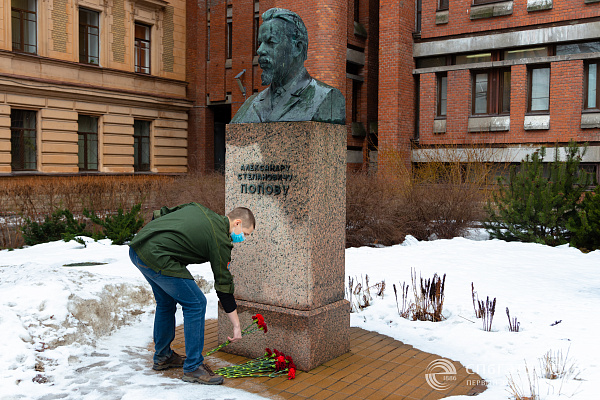 В честь памятной даты студенты, сотрудники и преподаватели ЛЭТИ возложили цветы к памятникам выдающемуся ученому, установленным на территории вуза и в сквере Профессора Попова на Каменноостровском проспекте.