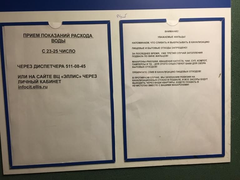 Тот, кто писал объявление!А если на первом этаже живет бабушка, котрая и отходов то не имеет? Она то в чем виновата? Почему её изначально считают виноватой в чем то?А если всего навсего не правильно построена система канализации этого дома? Её за деньги сдали и теперь она все время забивается. При чем тут жильцы вообще?И таких если много. В нормальном обществе должен действовать закон Презумпции невиновности!!! И это очень важно. Нельзя заранее считать всех преступниками и каждый сам должен доказывать, что это не так.Это хамство.