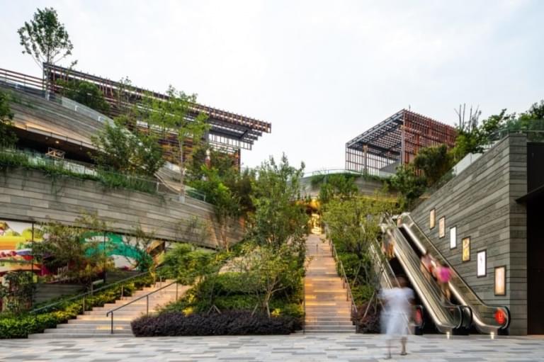 В результате крыша спроектированного студией торгового центра превратилась в общественный парк, попасть в который можно с помощью лестниц и лифтов прямо с первого этажа. На крыше расположены зоны отдыха и активности для детей и взрослых. Озеленение территории выполнено при помощи местных растений, высаженных на разной высоте для создания современного панорамного ландшафта.