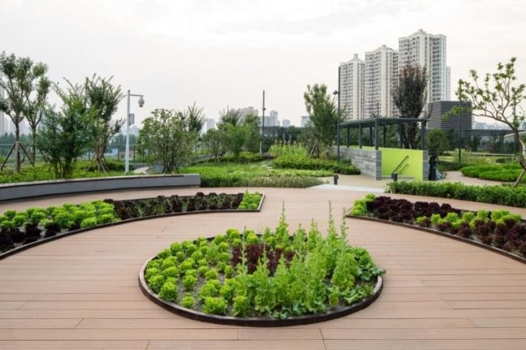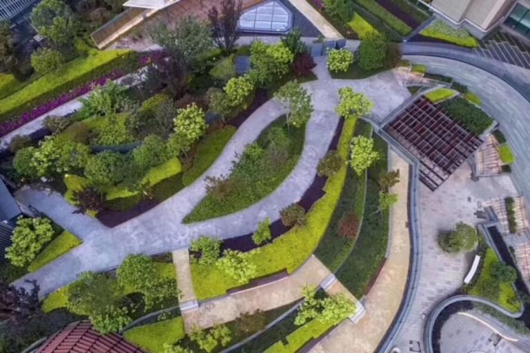 Построенный по всему периметру крыши торгового центра, общественный парк представляет собой сочетание пешеходных дорожек, зон отдыха и детских игровых площадок. Ландшафтный дизайн помогает определить различные активные и пассивные пространства, в то время как выбор растений создаёт «экологическую гавань» для жителей огромного мегаполиса. Озеленение также интегрировано в ландшафт на уровне улиц и вдоль других частей архитектуры, чтобы смягчить внешний вид здания и сделать его более «природным».