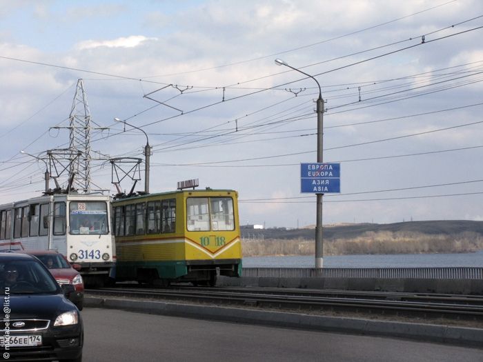 Магнитогорск является одним из двенадцати населенных пунктов в мире, расположенных в двух частях света. Река Урал протекает через Магнитогорск и делит его на две части, именуемые как «Левый берег» и «Правый берег». Граница между Европой и Азией проходит по реке Урал, соответственно левый берег находится в Азии, а правый — в Европе.