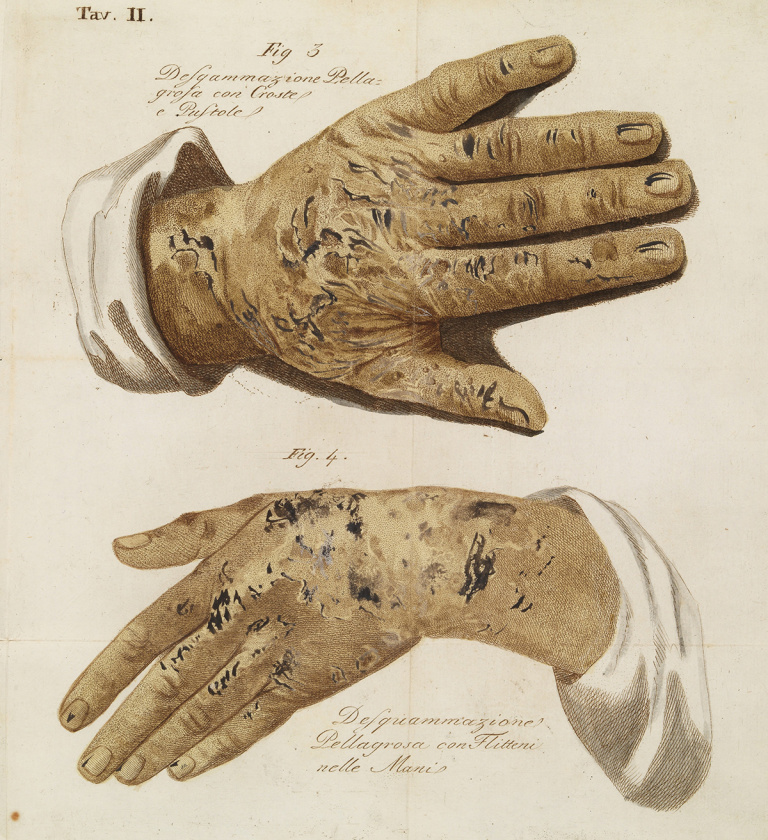 Пеллагра. Иллюстрация: Vincenzo Chiarugi «Saggio di ricerche sulla pellagra», archive.org